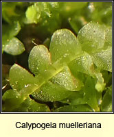 Riccia glauca, Glaucous Crystalwort Pellia neesiana, Nees' Pellia Cephaloziella sp Plagiochila asplenioides, Greater Featherwort Cephaloziella divaricata, Common Threadwort Cephalozia bicuspidata, Two-horned Pincerwort Calypogeia muelleriana, Mueller's Pouchwort Conocephalum conicum, Great Scented Liverwort Kurzia pauciflora, Bristly Fingerwort Cladopodiella fluitans, Bog Notchwort Odontoschisma sphagni, Bog-moss Flapwort Riccardia multifida, Delicate Germanderwort Aneura pinguis, Greasewort Nowellia curvifolia (Cephalozia curvifolia), Rustwort Calypogeia arguta, Notched Pouchwort Calypogeia fissa, Common Pouchwort Porella platyphylla, Wall Scalewort Metzgeria consanguinea, Whiskered Veilwort Frullania tamarisci, Tamarisk Scalewort