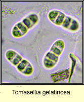 Spores simple   Polarilocular   1-septate   Acicular   Multi-septate   Muriform, sub-muriform   Multi-spored asci   Algae, lichen photobionts