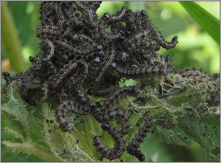1593 * Aglais urticae * Small Tortoiseshell Widespread, one of the most common British butterflies Wingspan: 45-62mm Flight time: Three generations between March and November Habitat: Hedgerows, gardens, waste ground and woodlands Larvae feed communally on Nettles (Urtica) |