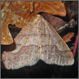 Wingspan: 27-32mm Season: December onwards, mainly February-April Habitat: Woods, gardens, hedgerows and heathland Larval food plants: Broad-leaved trees and shrubs including Oak, Birch, Hazel and Hawthorn |
