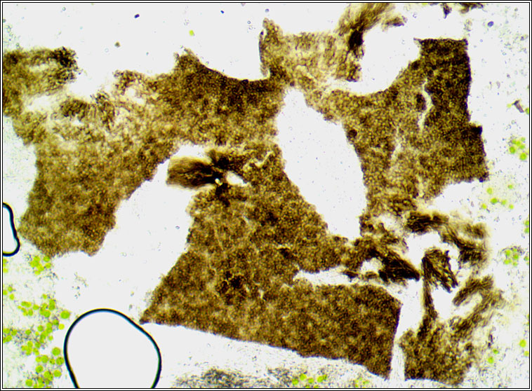 Q on Punctelia borreri Growth type lichenicolous Photographs on corticolous Punctelia borreri Conidia hyaline, 6-10 x 5-6 µm Micrographs below. |