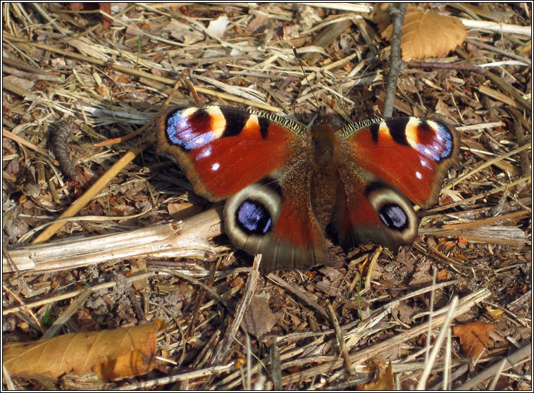 1597 * Inachis io * Peacock Widespread, common Wingspan: 62-70mm Flight time: April-June, mid July-September, two broods Habitat: Gardens, woods, hedgerows Larval foodplant: Nettles |