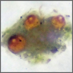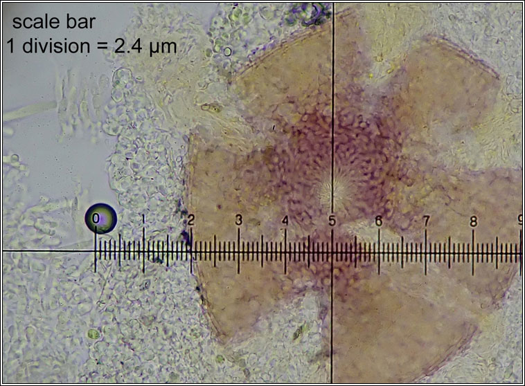Xenonectriella subimperspicua Growth type lichenicolous Photographs on Hypotrachyna afrorevoluta Recorded from the thallus of foliose lichens including Hypotrachyna, Punctelia and Ricasolia (Lobaria) species Small orange to pink perithecia, darker round the ostioles and immersed in the host thallus. Asci are 8-spored, spores 1-septate, 6.5-8 x 5-6 µm. Micrographs below Similar include: Xenonectriella physciacearum on Phaeophyscia and Physcia species and Xenonectriella zimmermanni on Physcia tenella |